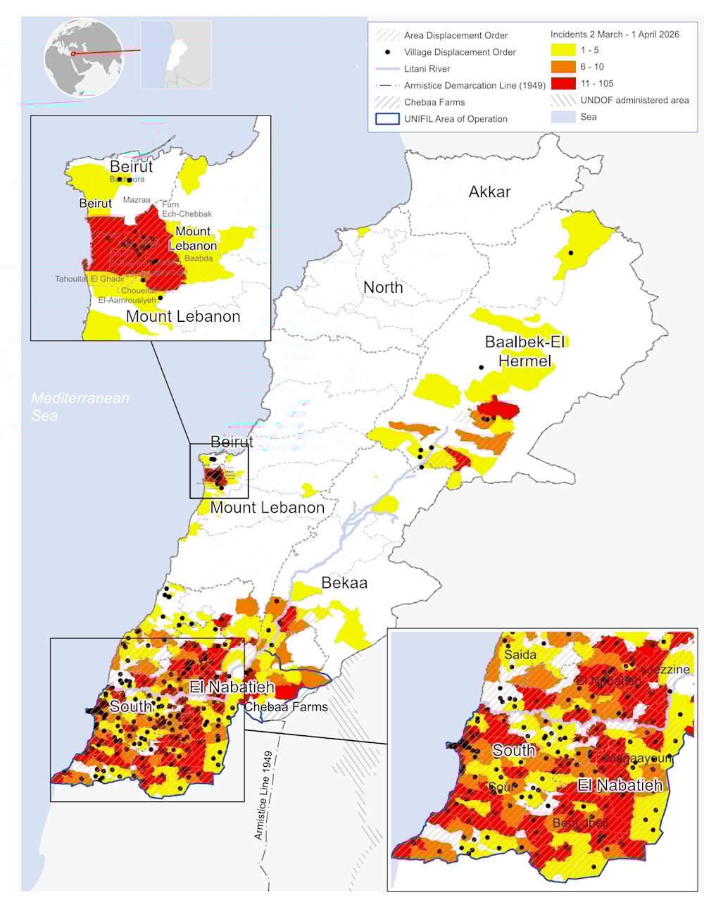 وفي هذا السياق، بلغت نسبة النازحين المقيمين في مراكز الإيواء في حرب 66 يوماً حوالي 21% من إجمالي عدد النازحين. وسجل حينها وصول 978 مركز إيواء من أصل 1170 إلى طاقتها الاستيعابية القصوى. أما اليوم، وبحسب أرقام المنظمات الأممية، يبلغ العدد الوسطي للنازحين في كلّ مركز إيواء حوالي 205 أشخاص، ما يعني أنّ المراكز لم تصل إلى طاقتها الاستيعابية القصوى. وعلى الرغم من ذلك، تستمر الشكاوى بالوصول من المراكز عن عدم توفر عدد من الخدمات الحياتية الأساسية مثل المياه والكهرباء والتدفئة في المراكز الموجود في المرتفعات.